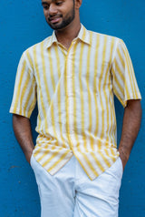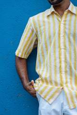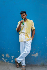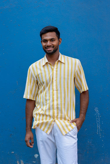 This garment is made from soft handloom cotton, woven in Madhya Pradesh by skilled artisans using age-old techniques passed down through generations. Known for its breathability and gentle texture, this fabric is crafted slowly and mindfully on traditional looms. It carries the quiet charm of handmade processes—subtle irregularities, a natural drape, and a story of craft, care, and culture woven into every thread.