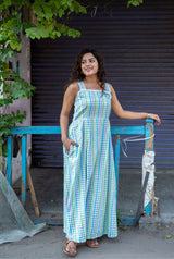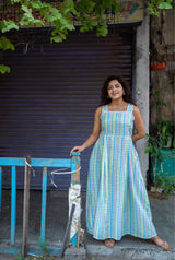 This garment is made from soft handloom cotton, woven in Madhya Pradesh by skilled artisans using age-old techniques passed down through generations. Known for its breathability and gentle texture, this fabric is crafted slowly and mindfully on traditional looms. It carries the quiet charm of handmade processes—subtle irregularities, a natural drape, and a story of craft, care, and culture woven into every thread.