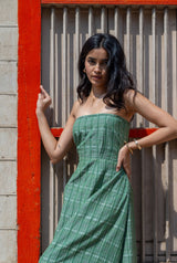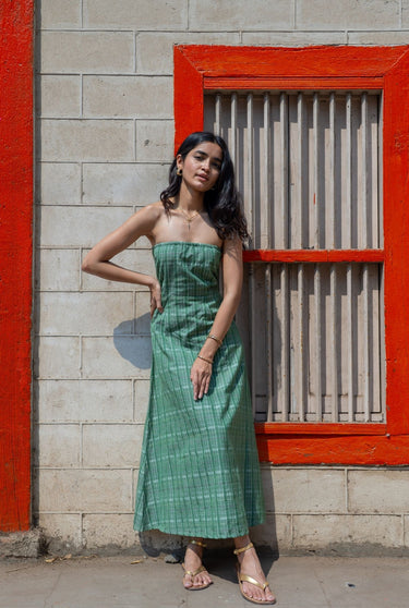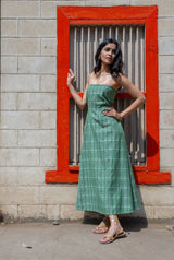 This garment is made from soft handloom cotton, woven in Madhya Pradesh by skilled artisans using age-old techniques passed down through generations. Known for its breathability and gentle texture, this fabric is crafted slowly and mindfully on traditional looms. It carries the quiet charm of handmade processes—subtle irregularities, a natural drape, and a story of craft, care, and culture woven into every thread.