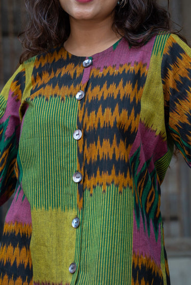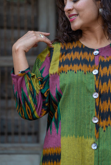 Ikat fabric has its roots in India, particularly in regions like Odisha, Gujarat, and Andhra Pradesh. The unique technique of dyeing the yarns before weaving creates intricate, blurred patterns that make each piece one-of-a-kind.