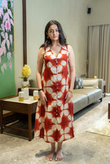 This fabric is crafted in Kutch, Gujarat using the artisanal clamp dye technique. Subtle variations in colour and pattern are part of what make it unique.